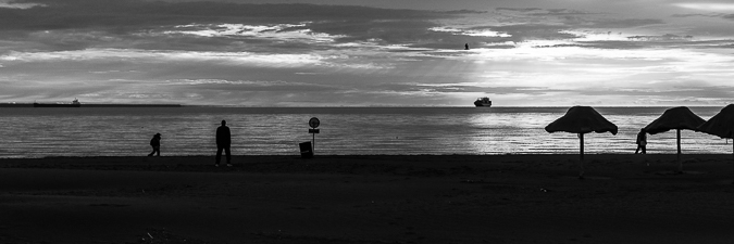 It's a short stay here before the next stop. South or West? And which place? I'll know it when it happens. Meanwhile I walk by the beach and the streets with complete calm. There's a family in a spot on the shore. The bodyguard is maybe in other beaches or at his home. The landscape is closer to what it was in another time.