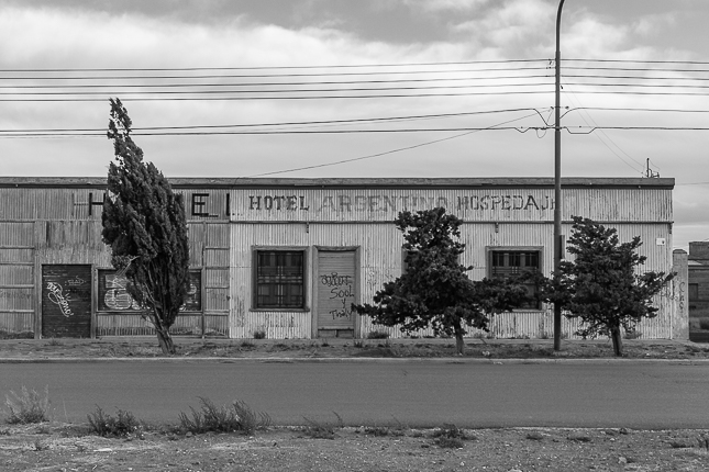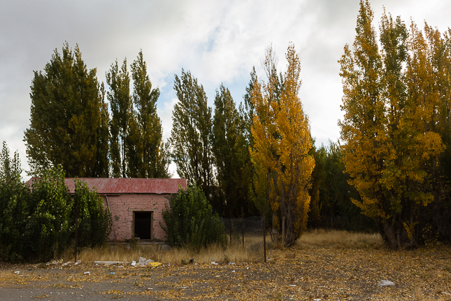 Perito Moreno. Santa Cruz. 2018 © Leo MicieliEl otoño tiñe las rutas y los alrededores en esta etapa del viaje. Perito Moreno parece ir a tono con la estación; las calles y la avenida principal llevan esa nostalgia otoñal en sus antiguas construcciones y en las arboledas. Muchas esquinas y casas tienen carteles indicando el valor histórico de cada edificio. Un fugaz viaje hacia otro tiempo, una parte que queda pero que ya no es tal como fue. Por un momento la imaginación se sitúa en las primeras décadas del siglo XX y ese instante se vuelve eterno, como ver un cortometraje de aquella época.