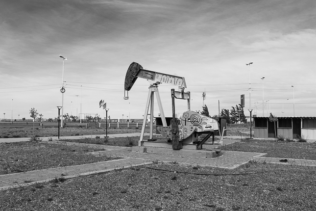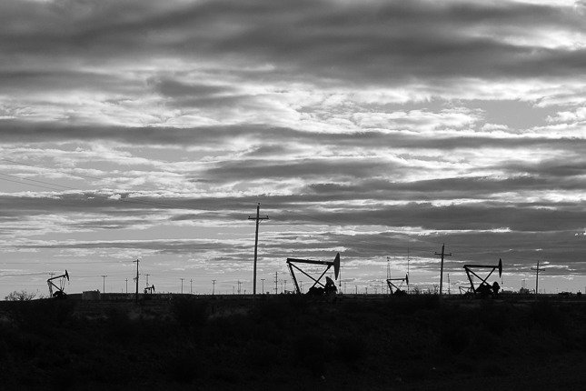 El petróleo jugaba y juega un papel decisivo aquí en la Cuenca del Golfo de San Jorge. Como todo lo relacionado al oro negro, los vaivenes de la economía petrolera suben y bajan como las cigüeñas extractoras, siempre dependiendo de decisiones tomadas en un puñado de salas en algún lugar del mundo que no es aquí, y que hacen que por un lado desborde el dinero mientras por otro se genere un miedo a perderlo, o a perder eso que representa.