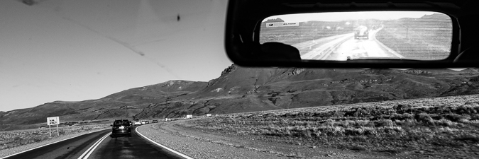 A medida que avanzamos a una velocidad entre 40 y 90 km/h cuando más, la geografía se hace dinámica y da la impresión de que quienes están quietos somos nosotros y lo que se mueve es el entorno. Nada nuevo desde que Einstein hablara de relatividad y marco de referencia, pero sentirlo es diferente a la teorías de la física. Pasan mesetas, cerros, mucha tierra y desierto, campos con algunos animales y algún que otro asentamiento o estancia alejados de todo. El sol es abundante y el viento también. Un par de veces nos encontramos con algún conductor y su vehículo detenido al costado con el capot abierto. Lo que más teme un viajero. Ofrecemos ayuda, sacando pecho por lo noble que ha sido nuestro compañero Volky, cruzamos algunas palabras y seguimos, confiados y sabiendo que en Patagonia nadie queda al desamparo.