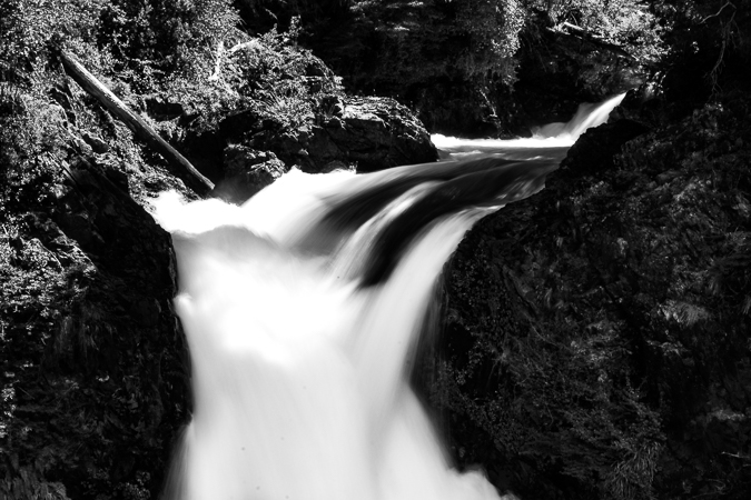 Río Manso, Bariloche. Río Negro. 2017 © Leo MicieliEl recorrido del lugar es corto a través de un sendero de no más de 200 metros que bordea el Río Manso y en donde hay un mirador hacia el salto de agua del río y la cascada. El sonido del agua cayendo varios metros se siente fuerte, y ese respeto que genera el poder del agua produce un efecto hipnótico entre ires y venires del curso del río. Como ocurre con el fuego, frente al cual podríamos quedarnos horas únicamente mirándolo. Sin duda mejores opciones que quedarnos mirando la TV, que también hipnotiza pero con otros propósitos.