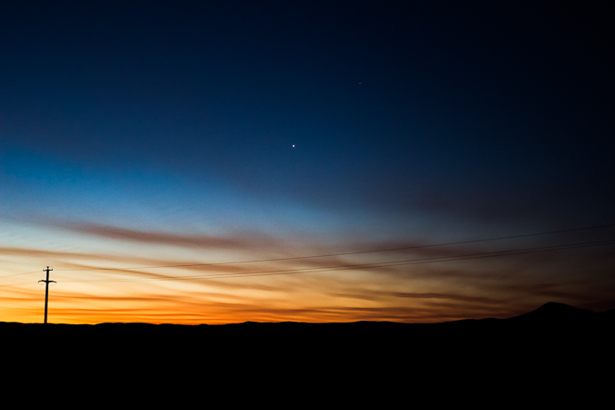 Ruta Nacional 23. Río Negro. 2017 © Leo MicieliEn Ingeniero Jacobacci damos por finalizada la ruta de ripio que nos sacudió hasta el alma. No tanto, salvo algunas cortas etapas está muy bien consolidada y perfectamente transitable. Momento para estirar un poco las piernas y alimentar al Volky. Nos quedan 620 km y la tarde va cayendo, aunque nada hay que nos apure, solamente un posible cansancio y las ganas de sacarnos un poco de tierra del cuerpo. Por lo demás también la ruta asfaltada está prácticamente libre de vehículos, algo que se agradece por la tranquilidad que da evitar el tráfico a altas velocidades.