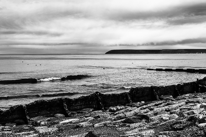 La ruta en esta parte cursa a pocos metros de la costa, por lo que de un lado hay meseta y aridez y del otro el frío mar que golpea el barranco. El sol sale y los ojos al fin ven algo de luz no filtrada por las nubes, y se siente calor en la cara. Es otro oasis climático que durará muy poco. Ya estoy en conocimiento de que las lluvias y el viento harán mella en horas de la noche.