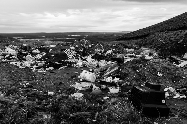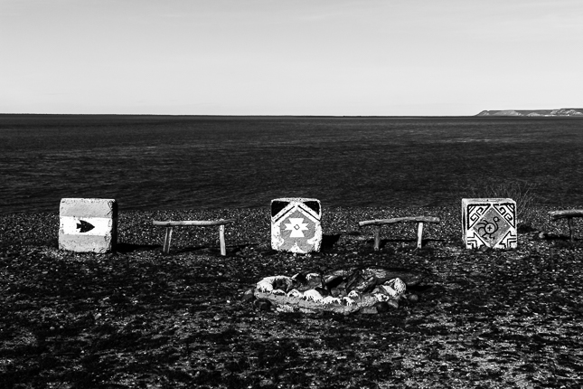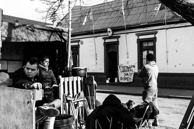 Carpa de protesta frente a la Municipalidad. Río Gallegos, Santa Cruz. 2017 © Leo MicieliDurante todo el viaje, en esta parte del recorrido y en otras anteriores, se repiten ciertas conductas y circunstancias que están indicando que algo no está yendo bien. La Patagonia no está al margen de los vicios y artificios que dañan su territorio, sus gentes y su cultura. Es inmensa y rica, es un suelo difícil de habitar, es un lugar a donde el avance impuesto por el mundo moderno llega después. Afortunadamente, esto hace que se mantenga a cierto resguardo respecto de otros lugares de la Tierra cuyo daño es ya irreversible. Sigue siendo suelo antiguo, remoto y sabio, porque así lo evidencia su geografía, su historia y prehistoria, y aún su presente con aquello y aquellos que van en pos de respetarla. Pero preocupa la creciente contaminación del terreno y las aguas, el deterioro de ecosistemas, el abuso de los recursos renovables y no renovables, las brechas sociales producto de manejos de cualquier signo político, el dinero que compra tierras y favores en detrimento de lo que siempre habitó aquí.
