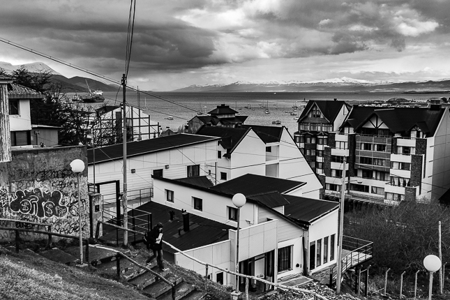 Puerto de Ushuaia. Tierra del Fuego. 2017 © Leo MicieliEs una ciudad curiosa, Ushuaia. Cosmopolita, ecléctica, elegida por turistas de todas partes del planeta y también por las autoridades de la primera mitad del Siglo XX para confinar a los presos por motivos de peligrosidad o políticos, con diciembres de veinte horas de luz y junios con la misma cantidad de oscuridad, hostil y amable a la vez, situada en un entorno de extrema belleza pero atravesada por cierta desidia en cuanto a la falta de planificación urbana en años más modernos, con una relativamente alta densidad de población teniendo en cuenta su clima riguroso y su distancia respecto a cualquier lugar del mundo, culturalmente activa, buscada como garantía del éxito económico, de la tranquilidad y de la seguridad, exenta de ciertos impuestos, y al mismo tiempo con una muy alta tasa de suicidios de jóvenes, algo que es también extensible a toda la provincia de Tierra del Fuego. En mis días aquí tengo la triste experiencia de ser testigo de esto último.