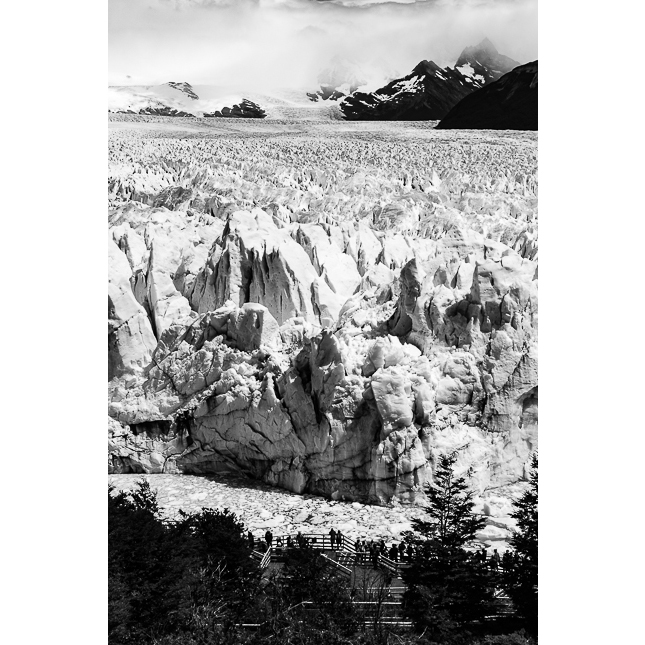 Glaciar Perito Moreno, Santa Cruz. 2018 © Leo MicieliAquí en la Patagonia todo es extenso. Pero tener enfrente a esta colosal masa de hielo rodeada de montañas y un precioso lago de aguas turquesas, el Lago Argentino o Kelta, hace replantearse la definición de 'extenso'. No estamos acostumbrados en nuestra vida diaria a presenciar cosas de semejante dimensión, aunque más que la dimensión en sí es el impacto sensorial y psicológico provocado por algo natural, gigantesco, único e irrepetible. Hay que mirar y observar de otro modo, adaptar la vista a algo nuevo, como si se abrieran los ojos al mundo por primera vez. La perspectiva se deforma, dan ganas de extender la mano para arrancar un pedazo de hielo, el cerebro se ve engañado una y otra vez ante algo que no alcanza a entender, como una ilusión óptica, y que silenciosamente se mueve milímetro a milímetro sin que uno se dé cuenta.