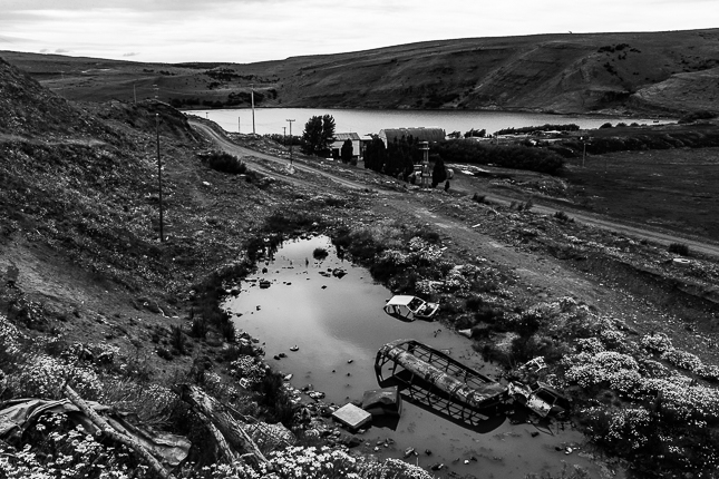 Vista del Lago Buenos Aires y Los Antiguos desde Chile Chico. Región de Aysén, Chile. 2018 © Leo MicieliPero hay problemáticas que afectan a Los Antiguos. Por sólo nombrar dos: la planta de tratamiento de líquidos cloacales, cuya capacidad se ve ya superada desde hace tiempo por la cantidad de habitantes que residen en el pueblo, que son poco más de 5000. En la fotografía de abajo se pueden ver e imaginar las consecuencias. Lo otro, que sucede en el resto del país, el uso masivo de agrotóxicos. Los Antiguos es la Capital Nacional de la Cereza, los cultivos son abundantes y la celebración de la Fiesta Nacional es todos los años en el mes de enero. Los agroquímicos perjudican la calidad de los frutos, se gastan fortunas en su utilización y, lo que es peor, contamina el agua y el aire, daña el ambiente y deteriora la salud de los habitantes, algo por demás comprobado.